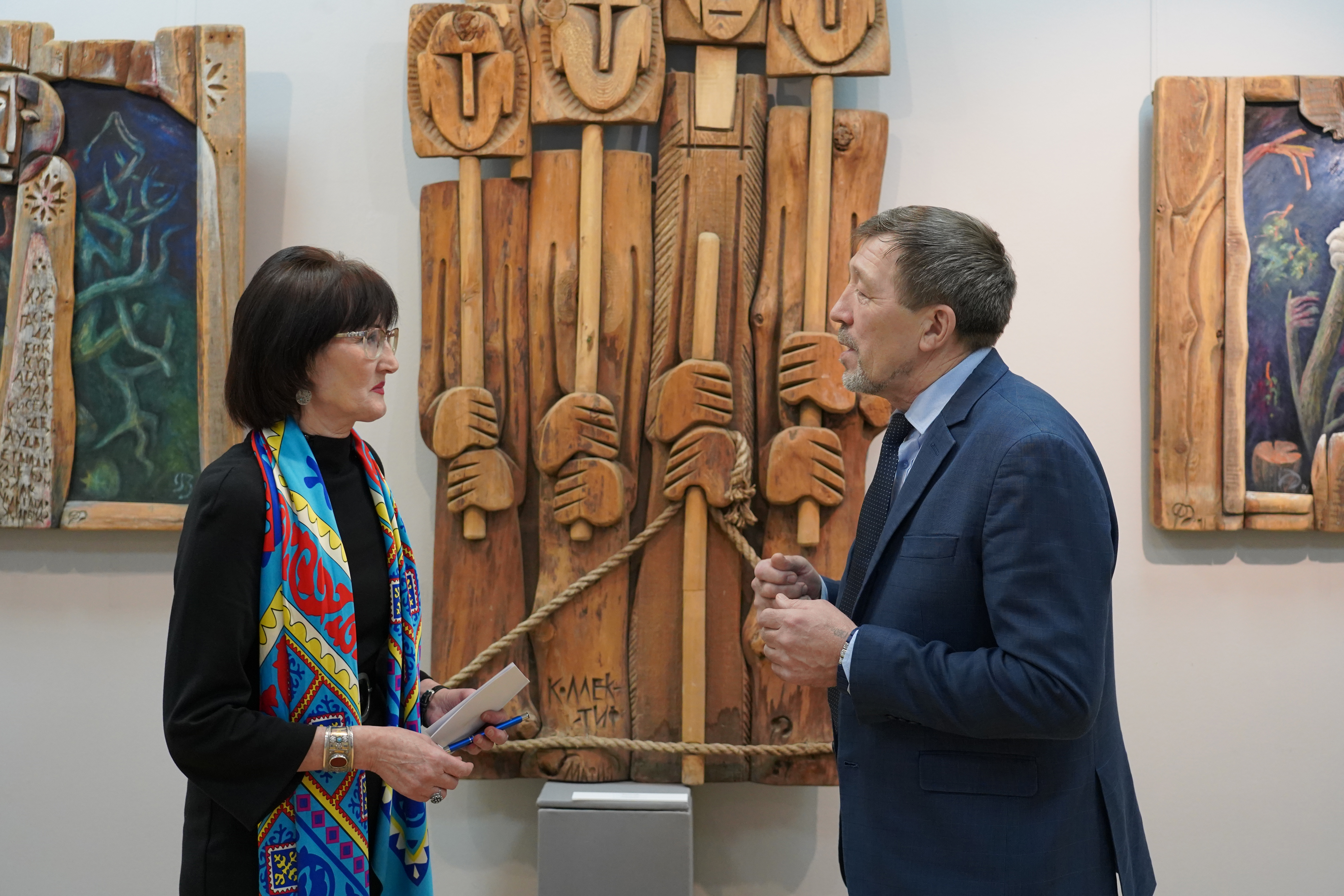 Экспозиция выставки представлена его основными сериями: «Ияләр» – «Обереги-хранители» (1989–1999), за которую художник был удостоен Государственной премии РТ им. Г. Тукая; остросоциальные скульптуры («Третированные», 1989–1991), деревянные рельефы «Могильные камни» – «Каберташи» (2000-е годы); «Столбы» – «Баганалар» (2008–2009).